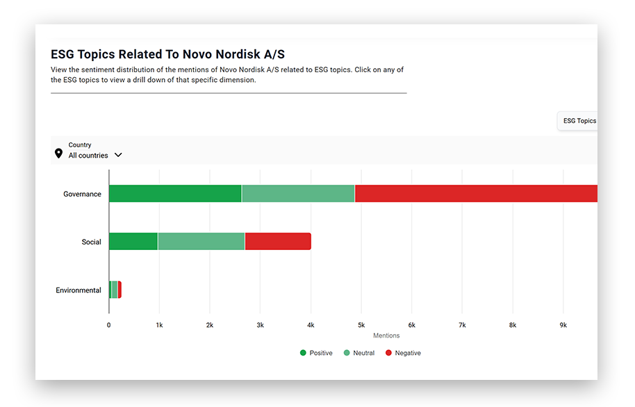 - Visibility and impact split: Measure both how much attention an ESG issue receives and whether it strengthens or erodes trust