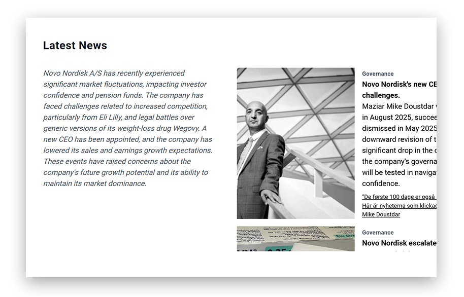 - Issue-level granularity: Drill into specific controversies, climate commitments, labor practices, or governance disputes